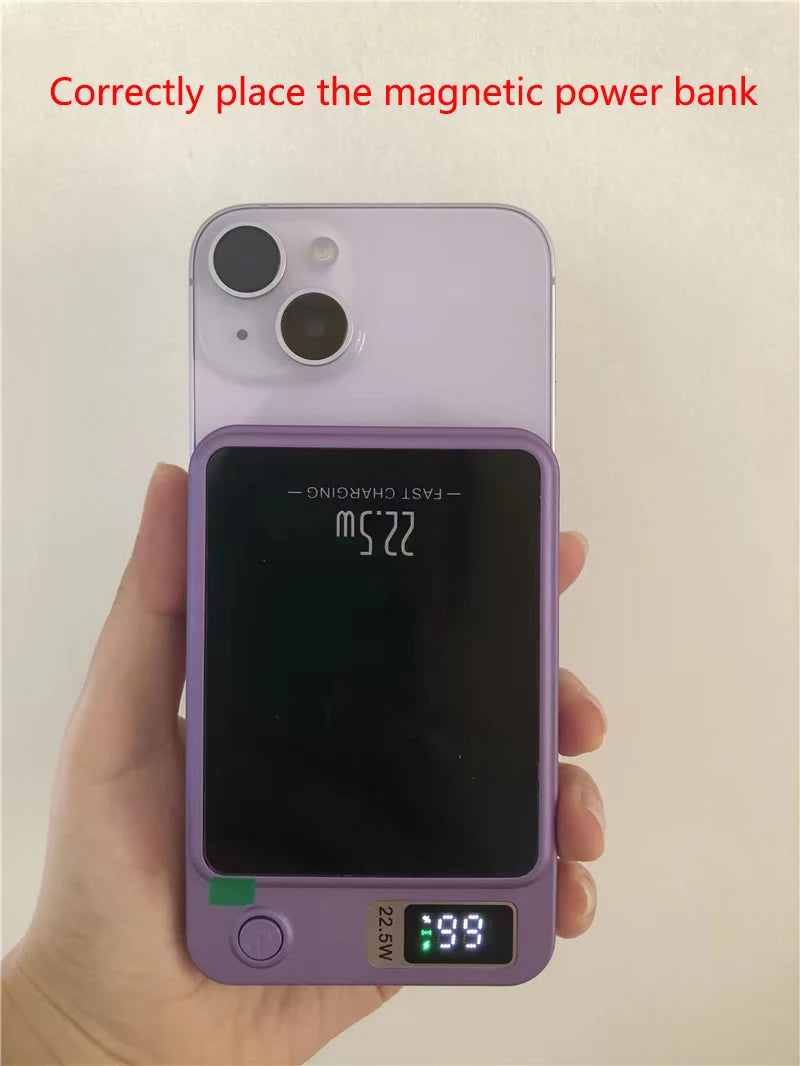 2. When using magnetic charging, please pay attention to whether the direction of the power bank is correct. You can refer to our video to show the correct usage.